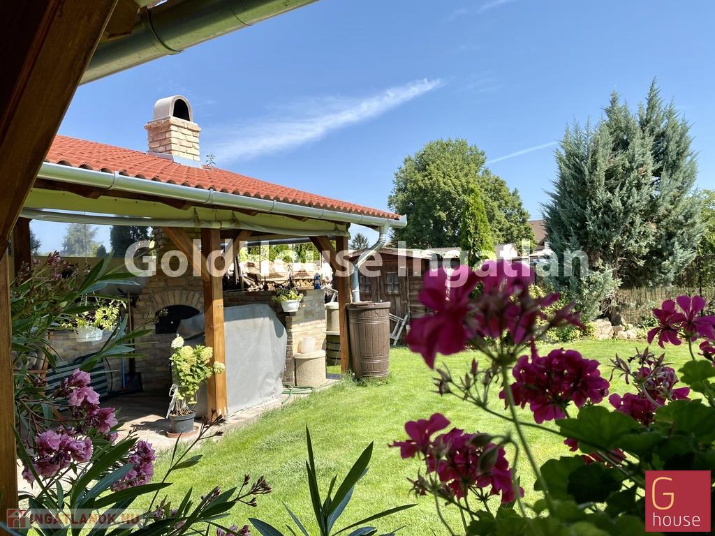 A ház gondozott, füvesített automatikus öntöző rendszerrel ellátott telken helyezkedik el, amelyet a kialakított grillezési lehetőséggel csak fokozni lehetett.