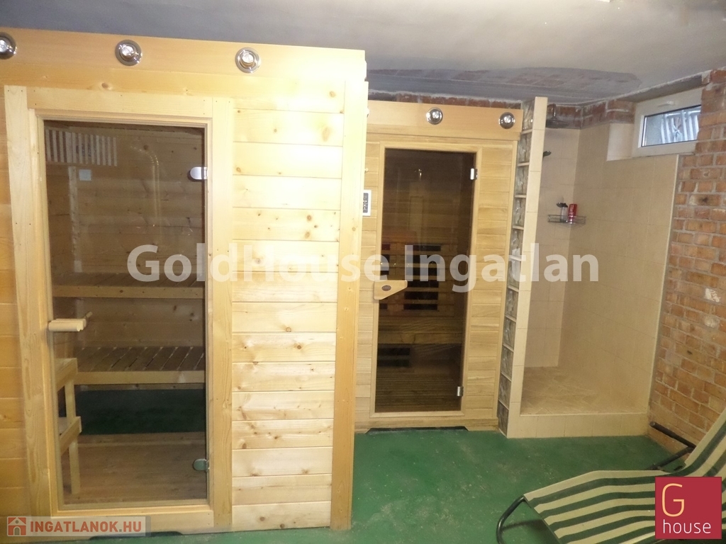 A ház szuterén szintjén kétállásos garázs tárolóval, hangulatos kis borospince és fitneszrészleg két szaunával kapott helyet.