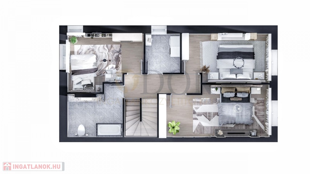 • 3 külön bejáratú hálószoba