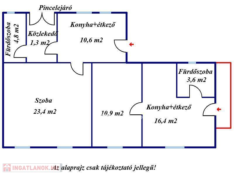 -A ház két, külön bejárattal rendelkező lakásból áll, mindegyik saját mérőórákkal ellátva.