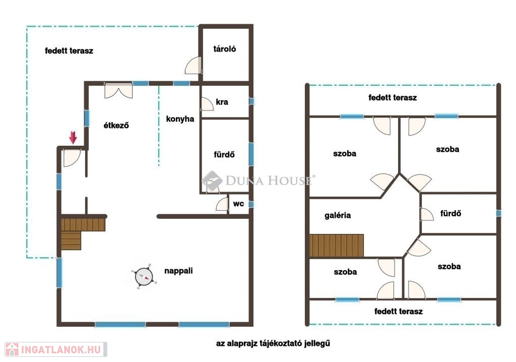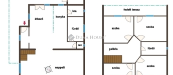 - Melléképület: 36 m², két szintes