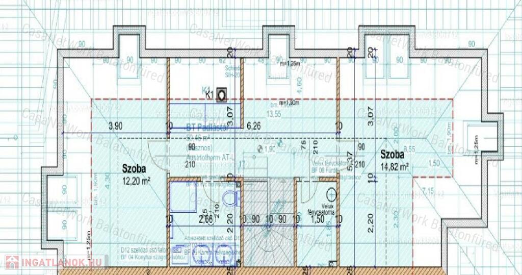 - a tetőtér előkészítve beépítésre, egy fürdő, két szoba és egy gardrób számára