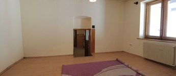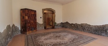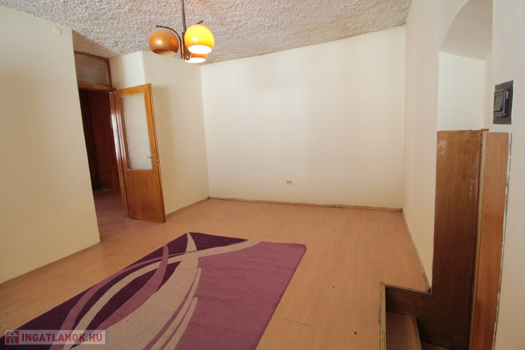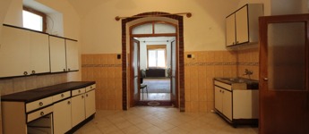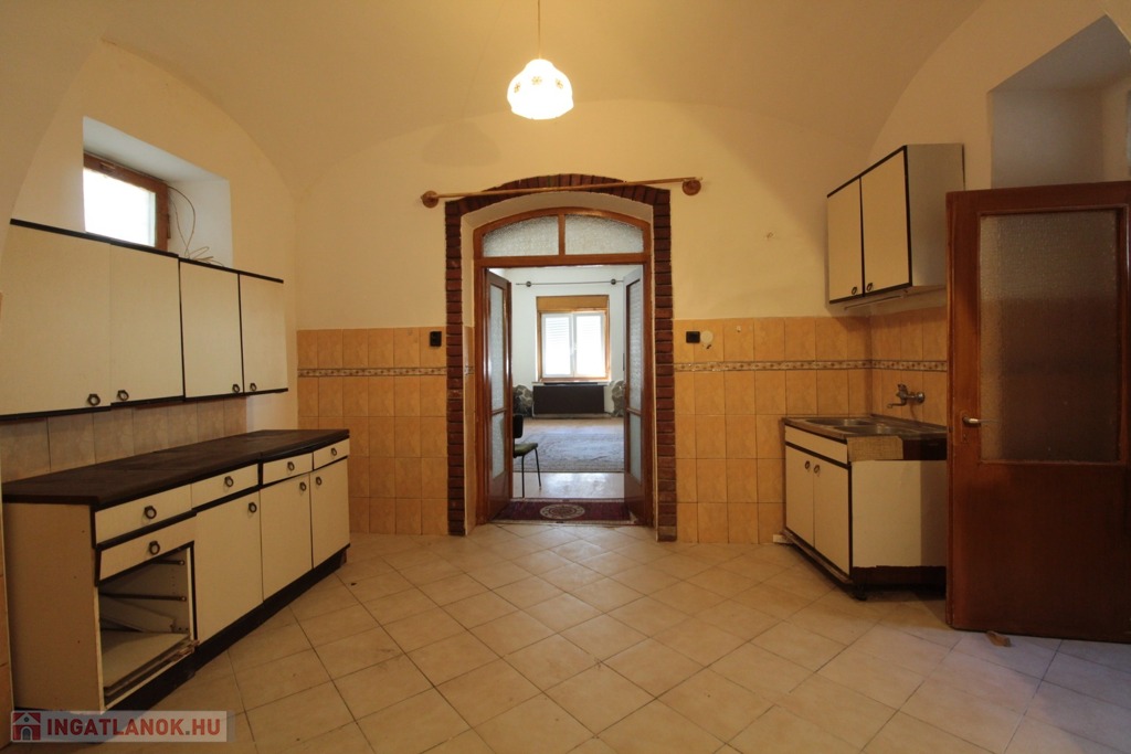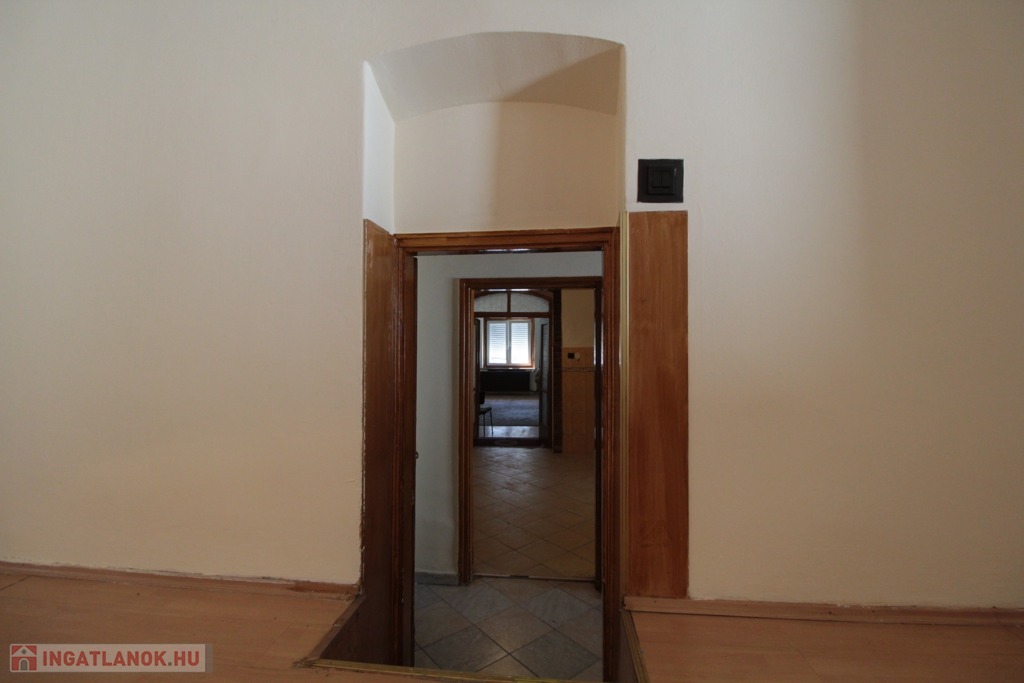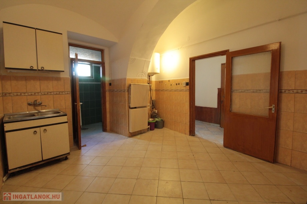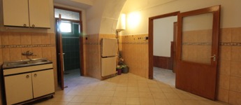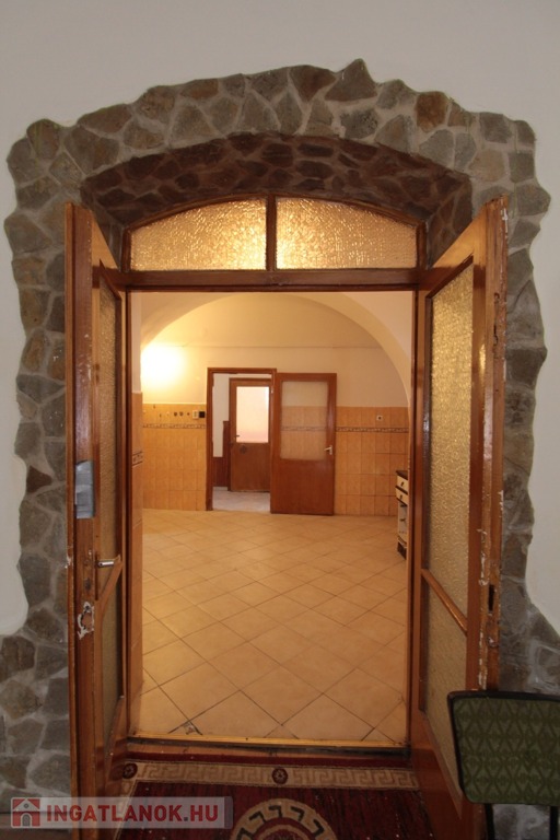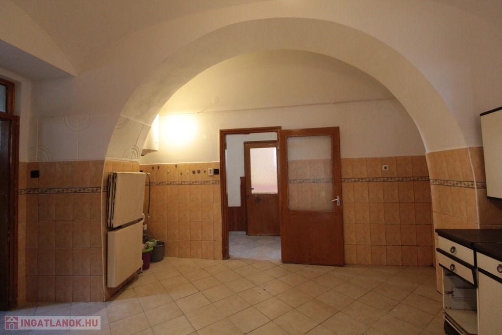 • Közlekedő: jobbra egy boltíves konyha, fürdő+WC és egy nagyméretű szoba található