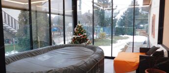 - 2024-ben épült a fűthető télikert árnyékolókkal, elektromos tetőszerkezettel, toló ajtókkal, benne 7 személyes jakuzzival.