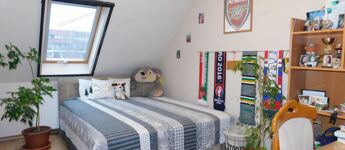 - Tetőtéri helyiségek: négy szoba, fürdőszoba, közlekedő, erkély.