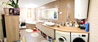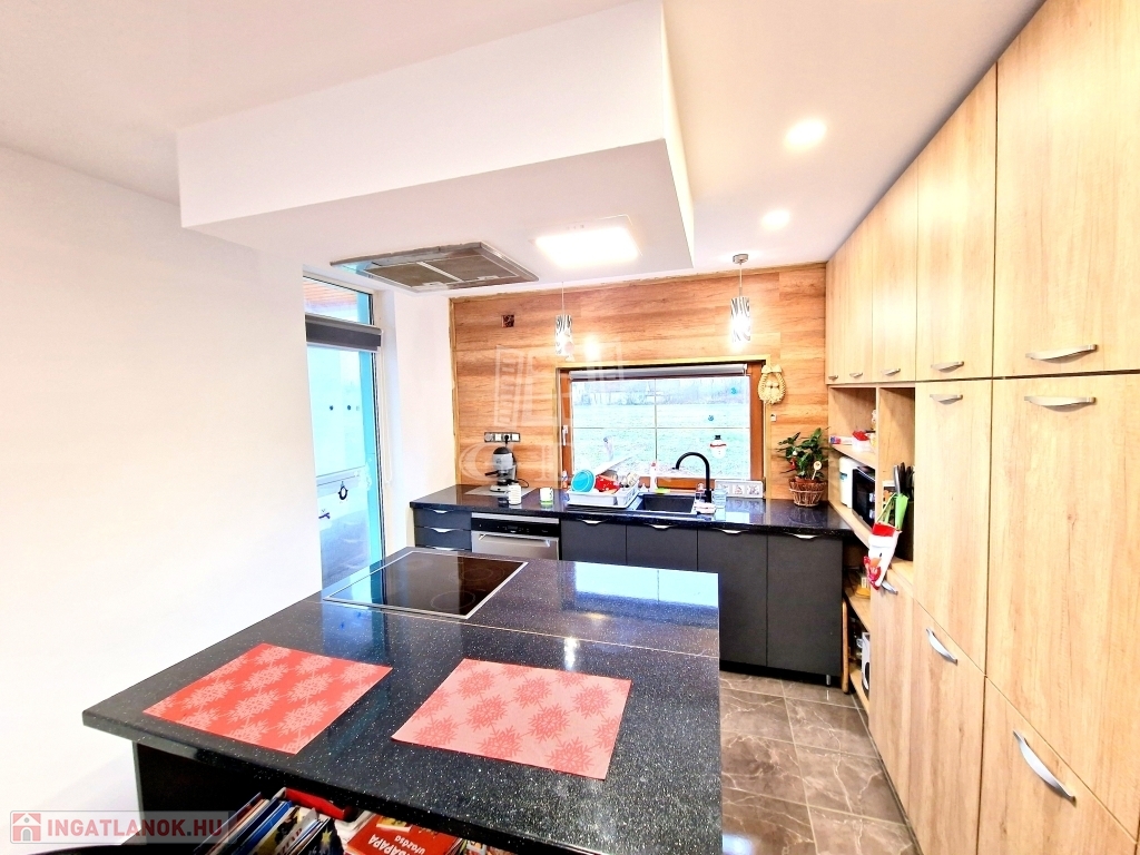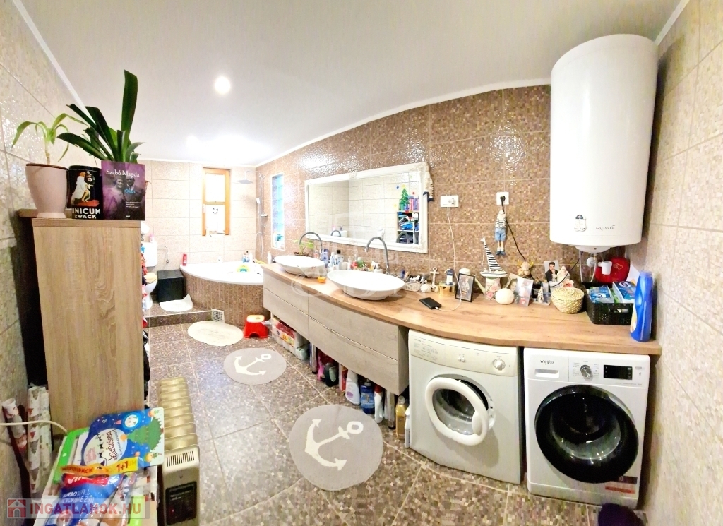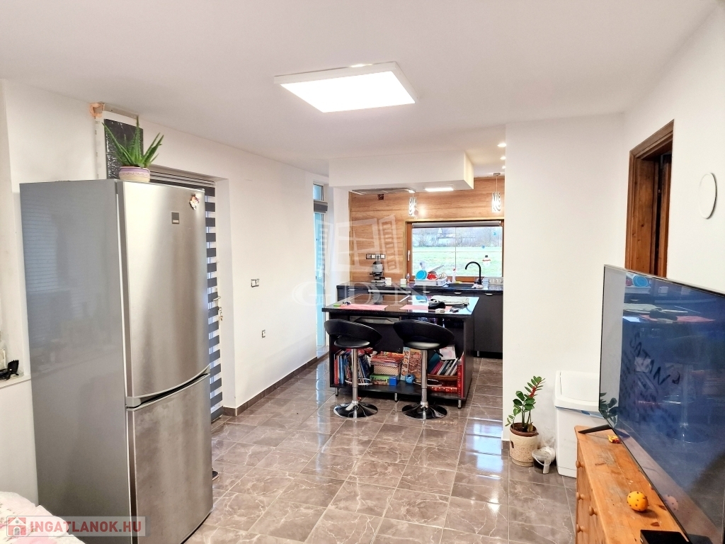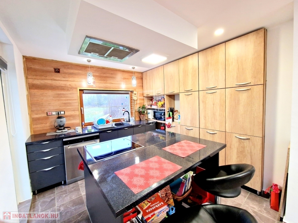 A házban jelenleg található egy világos, gépesített nagy konyha főzőszigettel - étkező helyiség, egy hálószoba és egy tágas fürdőkádas fürdőszoba.