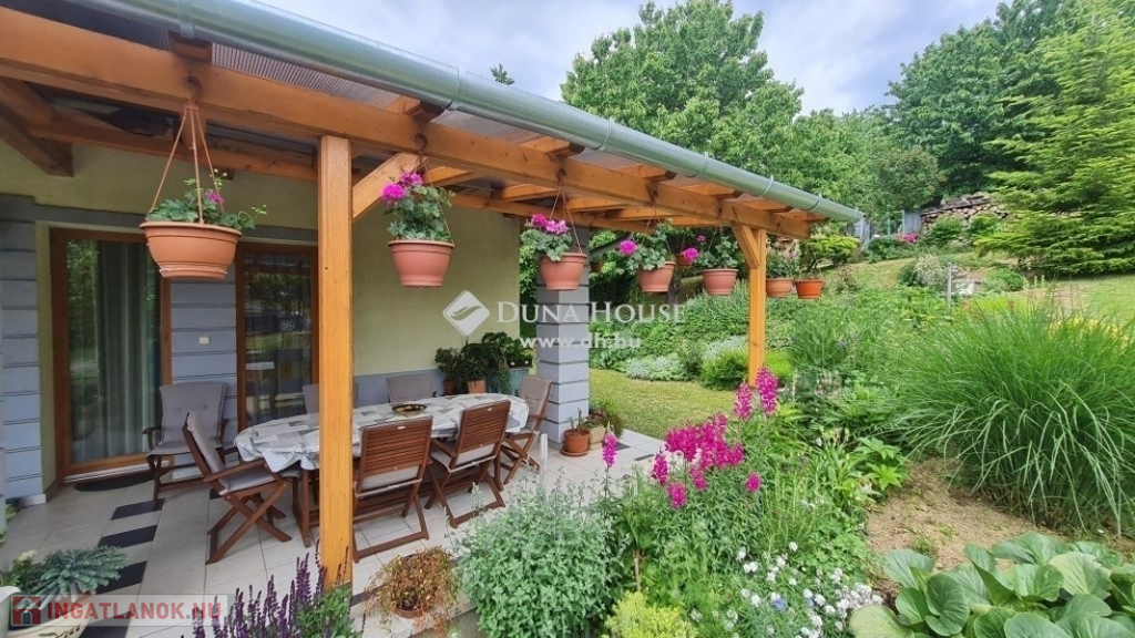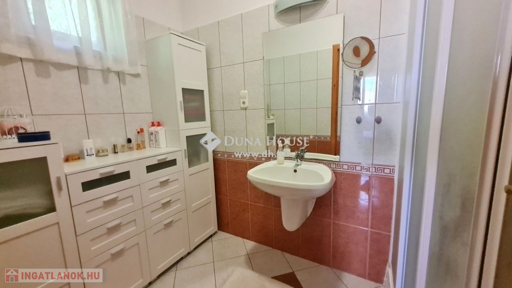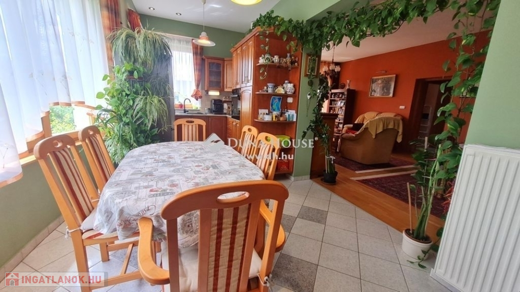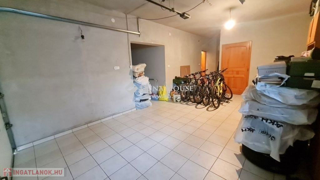 Az épület 2004-ben épült téglából, hőszigetelt, cserépfedésű és remekül karbantartott.A 28nm-es árnyékos, fedett teraszról a házba lépve az előszobán át jutunk a 15nm-es konyha-étkezőbe, illetve a hatalmas, 37 nm-es nappaliba. A kellemes hőmérsékletről télen a cserépkályha és a gáz-cirkó kazán gondoskodik.A lakószinten még 4 hálószoba -minden szoba tágas, kényelmes 12,6 és 12,47, és 12-12 négyzetméteresek-, 2 fürdőszoba, -ebből egyik WC-vel felszerelt-, külön WC, kamra és közlekedő szolgálja a család kényelmét. A lakószintről közvetlen kapcsolat a garázsszintre, ahol a mosókonyha zuhanyzóval és WC-vel, kamra, tároló, kiskonyha és a két autóbeállós garázs került kialakításra. A tároló falának elbontásával akár 3 autó parkolása is megoldható a garázsszinten, illetve a kiskonyha wellness helyiség vagy egy plusz szoba kialakítására is alkalmas.Mennyi szuper dolog van itt !