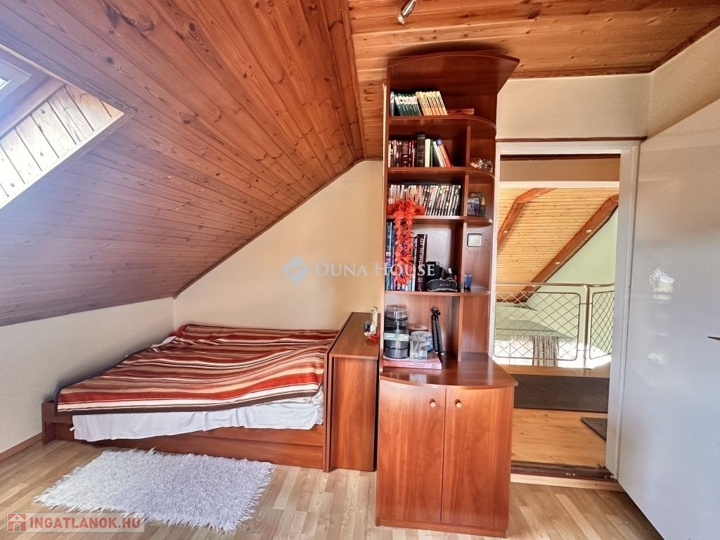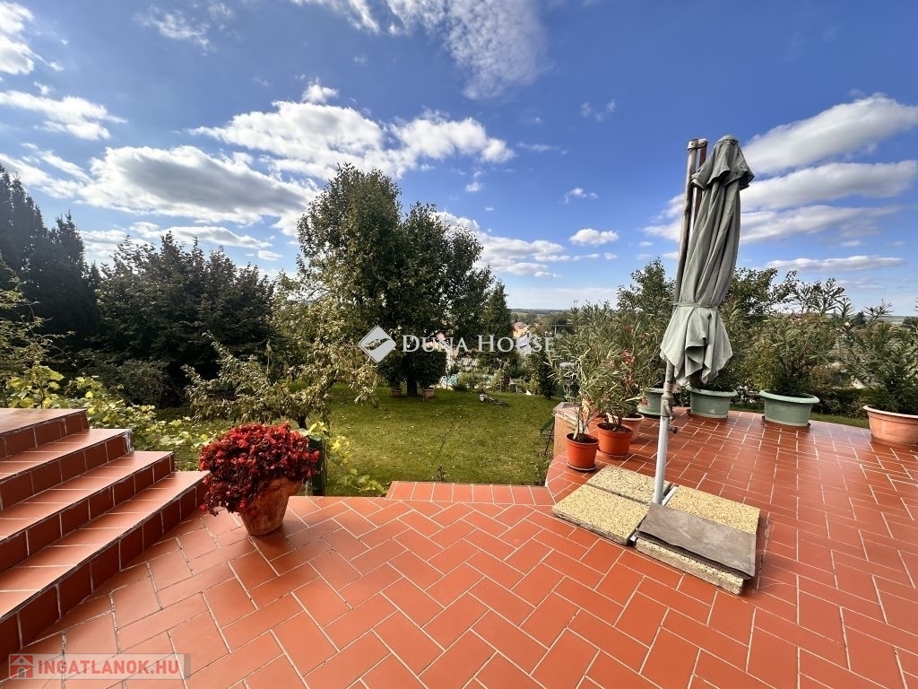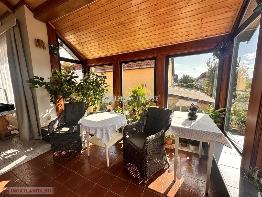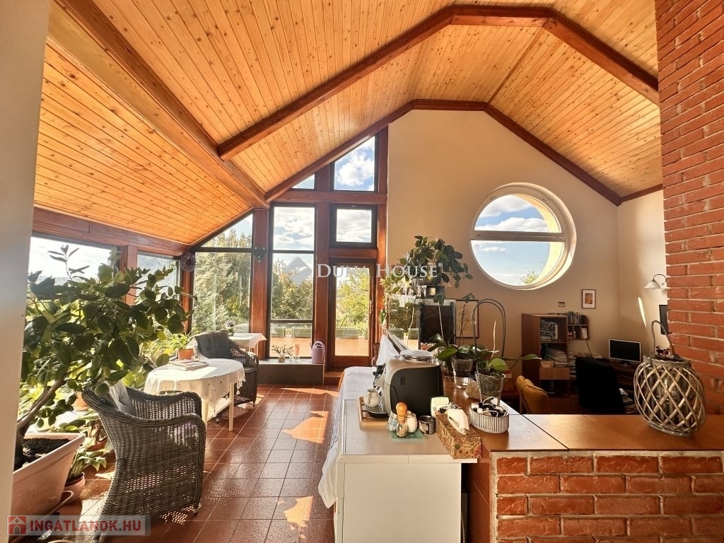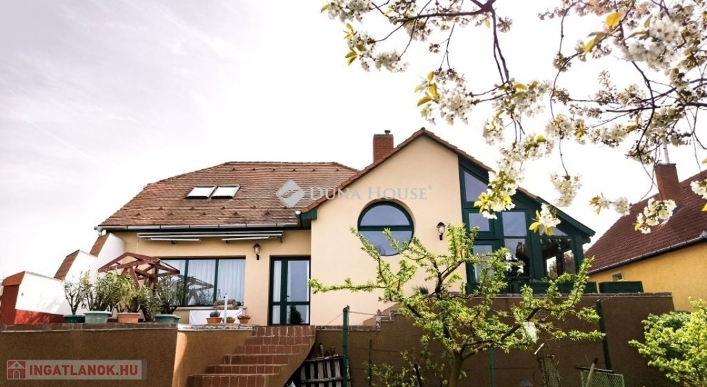 Egyedi tervezés, lenyűgőző belmagasság, pazar galéria és változatos térjáték jellemzi ezt a családi házat!Eladó egy örökpanorámás lakóingatlan zöldövezeti környezetben!A családi ház a két lakószinten 171 m2, a pinceszint ahol többek között a garázs is található 83 m2.A telek mérete ideális 872 m2 és sík terepviszonyokkal rendelkezik emellett mesés panorámát biztosít az ott lakók számáraAz 1991-ben épült ingatlan 2022-23-ban teljes nyílászáró és külső szigetelési felújításon esett át ( grafitos 12 cm), így korszerű hőszigeteléssel rendelkezik. A ház folyamatos karbantartása biztosítja az ingatlan kiváló állapotát. A házban gáz-, elektromos- és fatüzelési lehetőség is rendelkezésre áll, így mindenki megtalálhatja a számára ideális fűtési módot. A padlófűtés és a hűtő-fűtő klímaberendezés gondoskodik a kellemes hőmérsékletről az év minden szakaszában. A hangulatos kandalló még tovább fokozza a meghittséget!A ház nagy, nyitott, világos belső terekkel, télikerttel és galériával rendelkezik, ami egyedi hangulatot kölcsönöz az otthonnak. A négy hálószoba, és a nagyméretű nappali nagycsaládok számára is kényelmes életteret biztosít. Az ingatlan két fürdőszobával és külön WC-vel is rendelkezik, így a kényelem és a praktikum is garantált.Lenyűgöző kilátás nyílik a környező tájra és a városra a 90 négyzetméteres délnyugat-nyugati fekvésű teraszról, amely alatt külön kerti tároló áll rendelkezésre. A 83 négyzetméteres pinceszinten belül garázs, kazánház, barkács műhely, illetve raktározásra alkalmas helységek találhatók. Az épületet egy szépen karbantartott, ápolt füves kert veszi körül, amelyet örökzöldek, gyümölcsfák és egy kis zöldségeskert tarkítanak.Az ingatlan 300 méteres körzetében óvoda, iskola, élelmiszerbolt és a buszmegálló van, a bevásárlóközpont mindössze 1,5 km-re, a városközpont pedig 2,8 km-re található.Ne hagyja ki ezt a fantasztikus lehetőséget, legyen Öné ez a gyönyörű otthon, mely közel van a belvároshoz, mégis nyugodt, csendes környezetben található.Irodánkban pénzügyi szakértő kollégánk segíti ügyfeleink Hitel és CSOK ügyintézését ezzel együtt támogatja vásárlási szándékukat. Ne feledje vevőinknek minden szolgáltatásunk INGYENES!