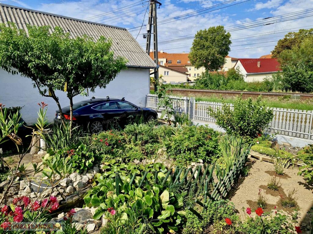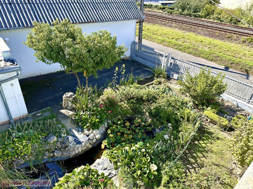 A beton alapra épült tégla falazatú ingatlan egy teljesen körbekerített, 480 m²-es, gondosan ápolt telken helyezkedik el, amelynek ékessége a cseresznyefa, meggyfa, almafák és egy hangulatos kerti tó – ideális hely a pihenéshez, kertészkedéshez vagy családi pillanatokhoz.