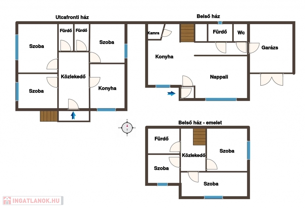 Zalaegerszegen, a csácsi városrészben vált eladóvá ez a két családi házból álló ingatlan. Az utcafronti ház 3 szobából, 2 fürdőből, konyhából és közlekebőből áll, míg a hátsó házban 3 szoba, nappal-konyha, külön wc és 2 fürdőszoba található. Az 547 nm-es telek kényelmes méretű, igény esetén a két ház akár külön is választható.