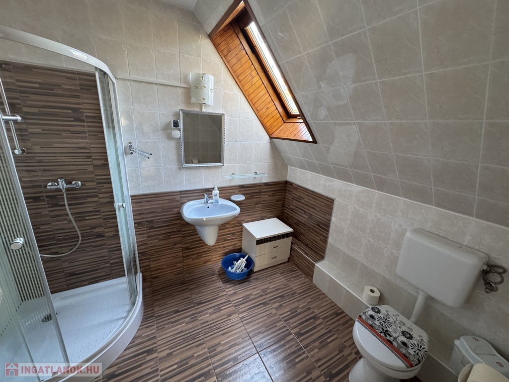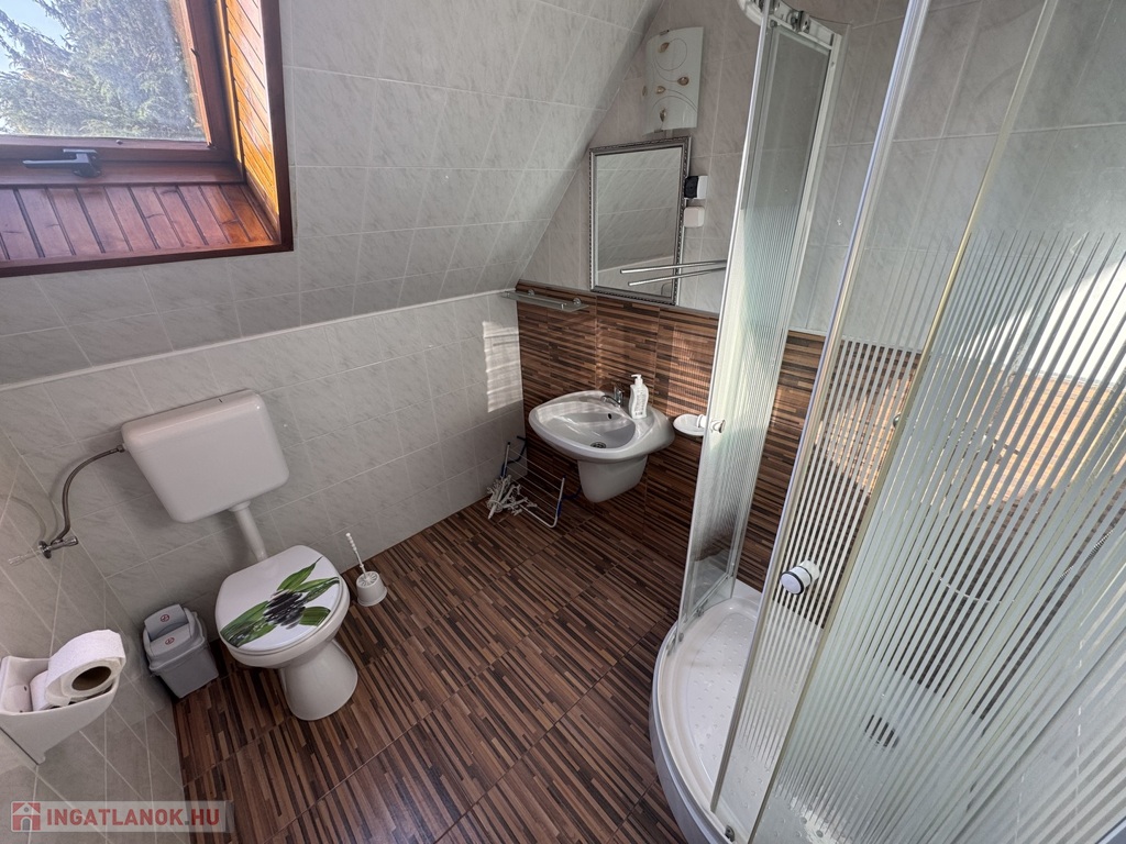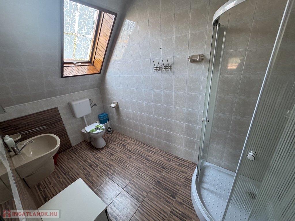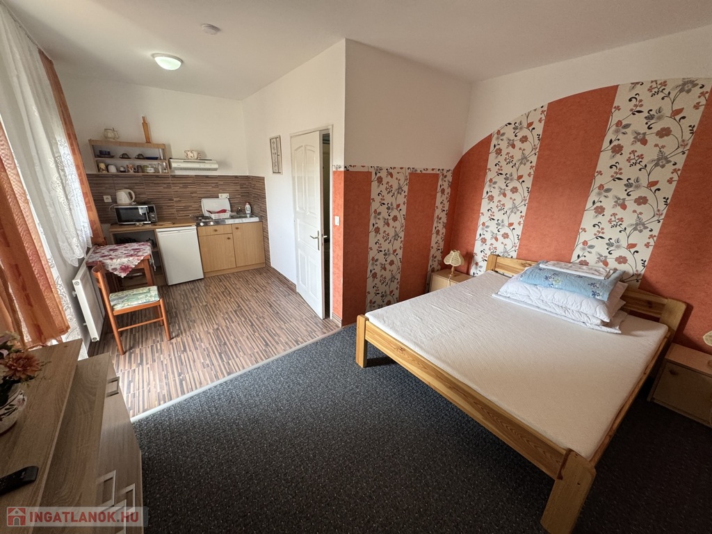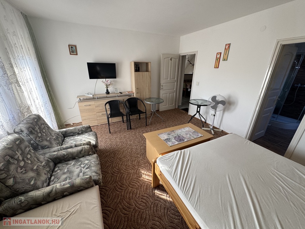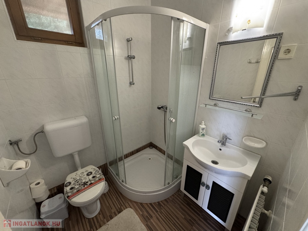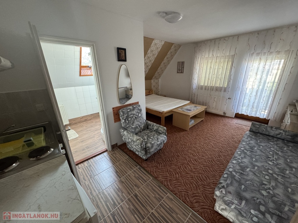 teraszkapcsolatos szoba, étkező és főzőkonyha résszel, zuhanykabinos fürdőszoba + Wc.