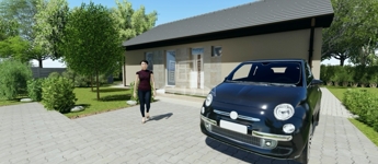 Az ár tartalmazza: kerítés motoros kapuval, térköves bejáró, 2 autós beálló/ház.