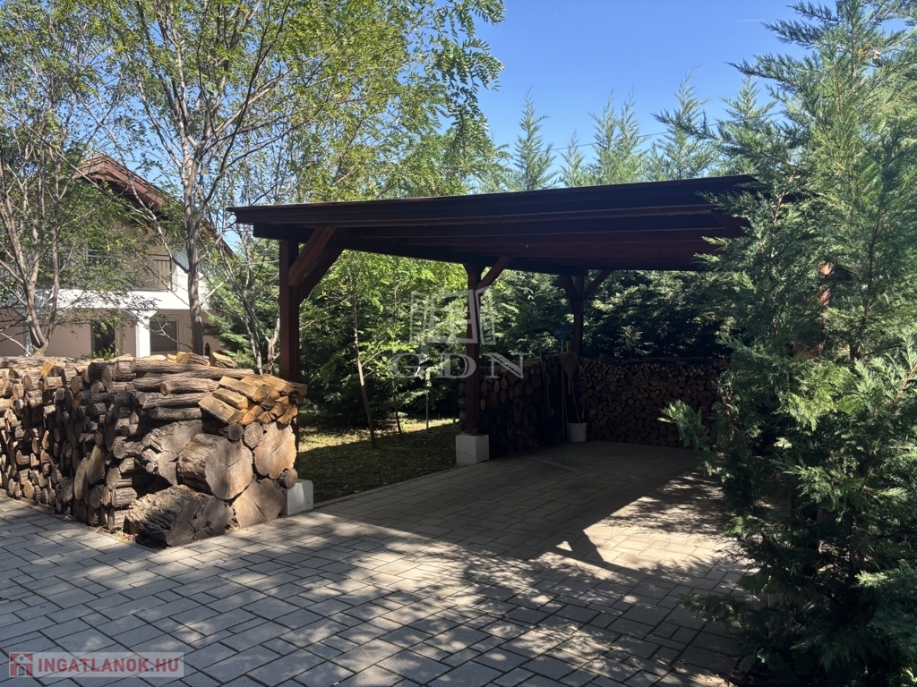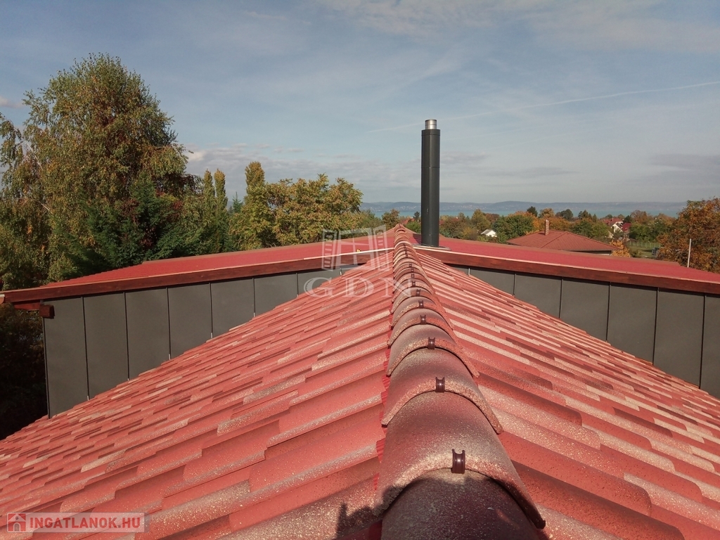 Zamárdi állandóan lakott részén, kellemes hangulatú, csendes, kervárosias-családi házas környezetben (Rétföldi utcában) eladó egy összesen 900 nm területű telken megépült, összközműves, önálló helyrajzi számon nyilvántartott lakóház. Az épület egy tehermentes, kétszintes, alápincézett, kiváló állapotú családi ház, amely 2020-ban került végső befejezésre. Szerkezete masszív monolit-vasbeton és tégla + 10 cm-es dryvit külső hőszigeteléssel. A tető mediterrán cserépfedést kapott. A ház alatti pince és tároló 25 nm, a kertkapcsolatos földszinti lakórész 75 nm + 25 nm déli tájolású, fedett terasz. Nappali és konyha közvetlen teraszkapcsolattal, két hálószoba, egy tágas közlekedő, mosó és háztartási helyiség, valamint egy fürdőszoba (mosdó – kád – wc – bidet) helyiségekből áll. Az egyik hálóban és a tágas közlekedőben beépített bútorok, valamint egy hatalmas gardrobe-fal található. A használati melegvizet villanybojler szolgáltatja. A házhoz tartozó telekhányad 450 nm. A tulajdoni lapon a ház 130 nm területtel szerepel, ez a tetőtéri lakótérrel egyben értendő, de az emeleti lakótér jelenleg egylégterű, szerkezetkész állapotban van. Itt kialakítható egy akár 50-60 nm területű, önálló lakás, amelyhez tartozik egy ugyancsak déli tájolású, 9 nm-es, a zöld kertre néző, már elkészült fedett terasz is. A műanyag nyílászárók redőnyözöttek. Az ingatlan összközműves, a gáz nem került bevezetésre, ez igény szerint közvetlenül a telek előtt elérhető. A ház fűtése elektromos fali panelekkel és/vagy egy cserépkályhával lehetséges, minden helyiség egyedileg is fűthető. A cserépkályha önmagában is kényelemesen kifűti a teljes házat bármilyen hidegben, így a rezsi minimális. Az áramellátás 3×32 amper. A parkolás a kerten belül, egy 26 nm területű, fedett gépkocsibeállóban lehetséges, valamint a telek előtt is egy védett, kizárólagos használatú területen. A hatalmas, fedett terasz előtt egy kellemes méretű, örökzöldekkel és rózsaszín akácokkal gazdagon beültetett, nyáron zöld lombok által árnyékolt pihenőkert található. A kertben elhelyezésre került egy 1600 liter űrtartalmú esővíz gyűjtő ciszterna is.