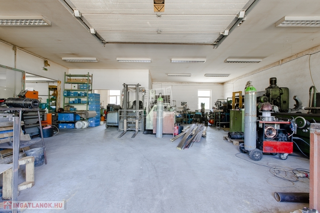 Fűtött, szigetelt csarnok – kb. 700 m² alapterülettel, ipari kapuval, raktározásra, gyártásra vagy akár szerviz tevékenységre is alkalmas.
