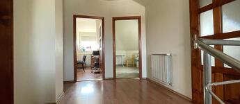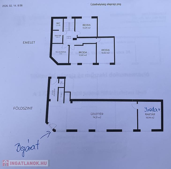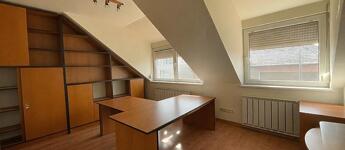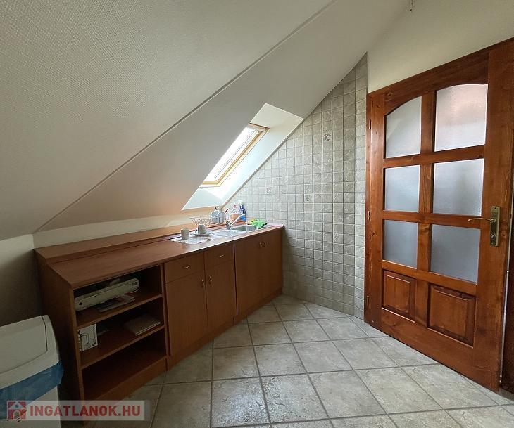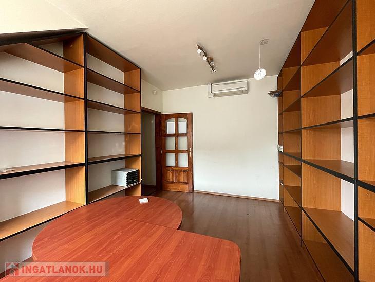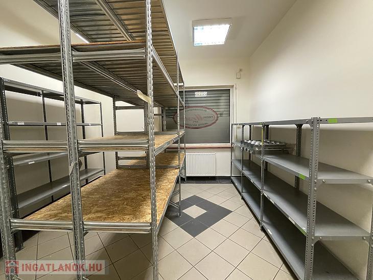 Az 56 m²-es emeleten két különálló irodahelyiség, egy teakonyha, egy mosdó, valamint egy kisebb raktár található, így az emelet ideális adminisztratív vagy irodai funkciók ellátására.