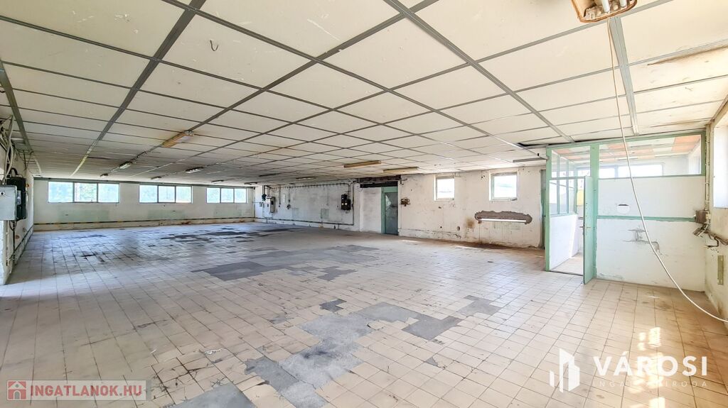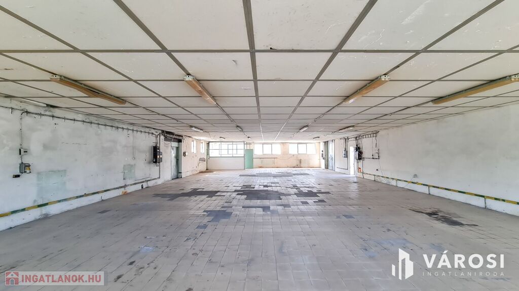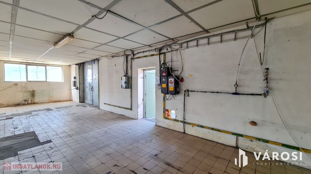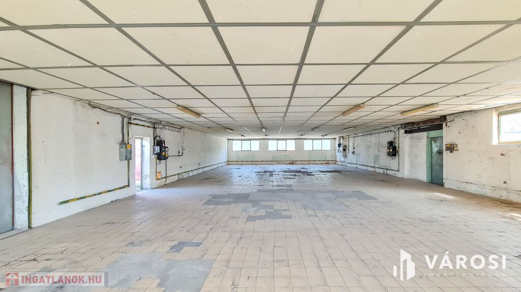 Beton és járólap burkolat épületen belül, 3X50 Amper ipari áram és vízóra van (csatorna nincsen).