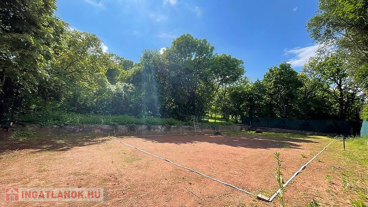 Kútvölgyben, zöldövezeti környezetben, körbekerített teniszpálya eladó kocsibeállóval.