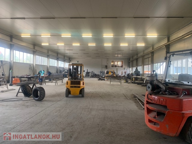 - 960 m2 (48*20m) gázos hőlégfúvóval fűtött, 6m belmagasságú szigetelt szendvicspanel műhely/raktár