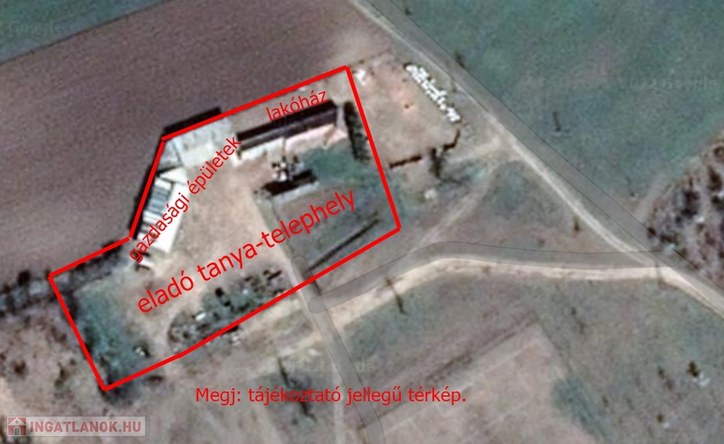 Közvetlenül a falu mellett, tanya lakóházzal, gazdálkodásra alkalmas 600 nm alapterületű melléképületekkel.