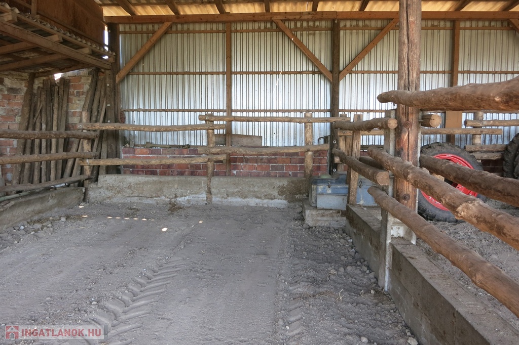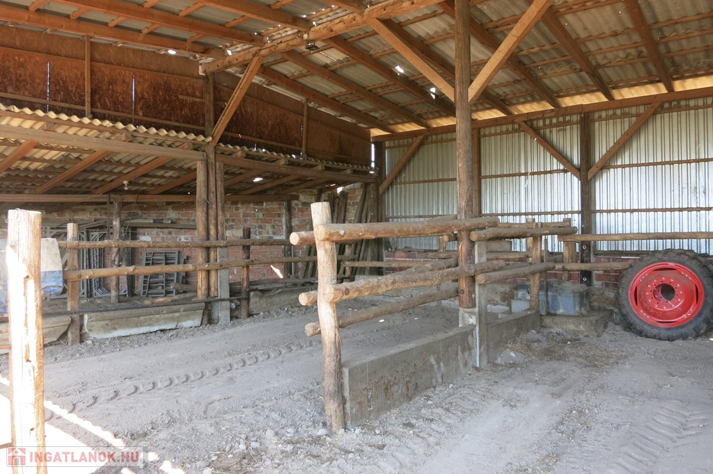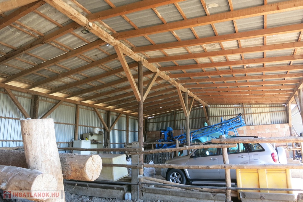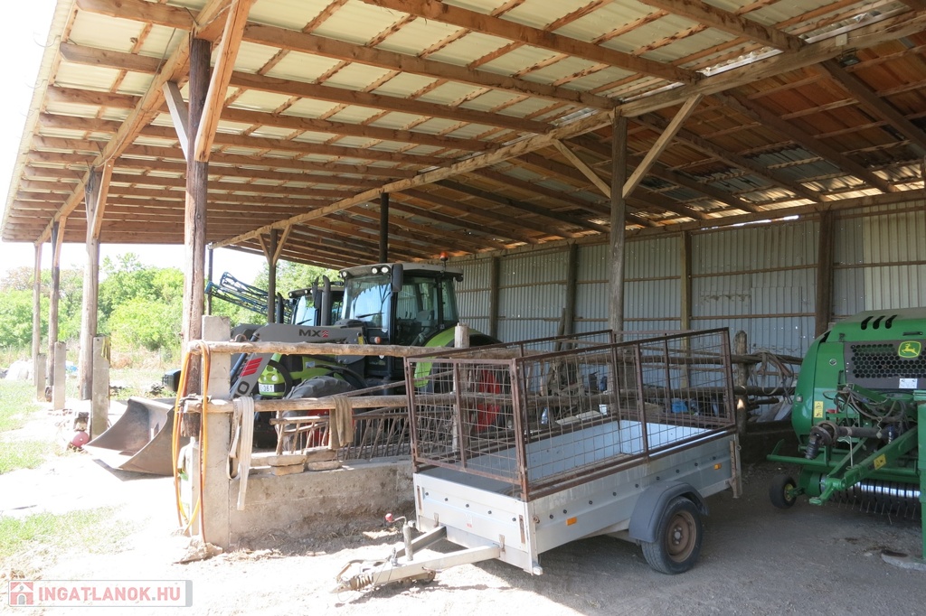 Újszerű állapotú, nyitott, nyeregtetős gazdasági épületek + terménytároló. Az együttes alapterületük 600 nm.