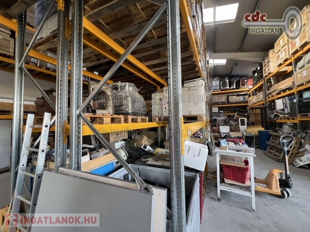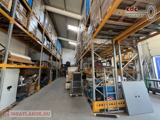 Egyéb: biztonsági kamerarendszer, IT hálózat, távfelügyeletre kötött riasztórendszer, nagyméretű homlokzati világító reklámtábla. Az ingatlan ideális cégközpontnak, logisztikai központnak, vagy műhely besorolásának köszönhetően akár ipari termelőtevékenységre is alkalmas. Jelenleg az épület raktárként működik, 350 raklap kapacitású állványrendszer lett kiépítve, ami a gerendapárok átrendezésével akár 500 raklaphelyig növelhető. Ezen minősített és engedélyeztetett polcrendszer is igény esetén külön megállapodás részét képezheti, valamint a két emelőtargonca, továbbá szükség esetén a kint elhelyezett 4 raktár- és egy irodakonténer is. Az ingatlan per- és tehermentes és rövid időn belül birtokba is vehető! Az ingatlan fordított áfával könnyedén kivitelezhető. Irányár: 145.000.000 Ft.