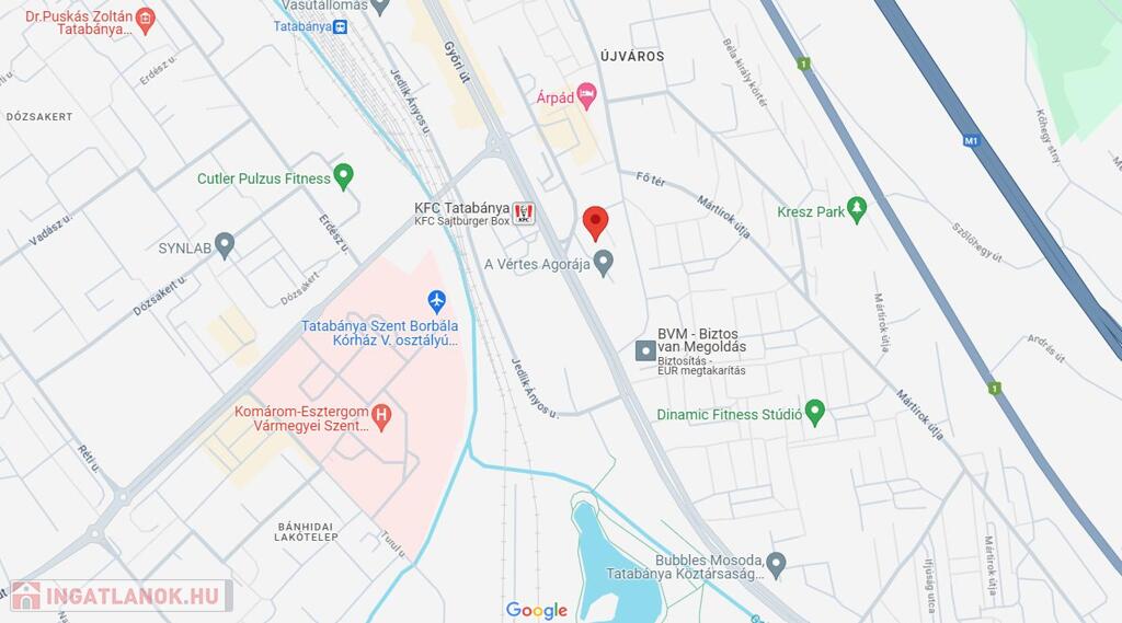 Az ingatlan elhelyezkedése igazán kivételes, Tatabánya városközpontjában található a Vértes Agórája (Tatabányai kulturális központ) közvetlen szomszédságában. Mivel az ingatlan Tatabánya 4 sávos fő útja (Köztársaság útja) mentén, valamint vasút és buszpályaudvar, M1-es autópálya közelében található, ezért megközelítése kiváló, közvetlen környezetében nagyszámú gépjárműparkoló rendelkezésre áll.