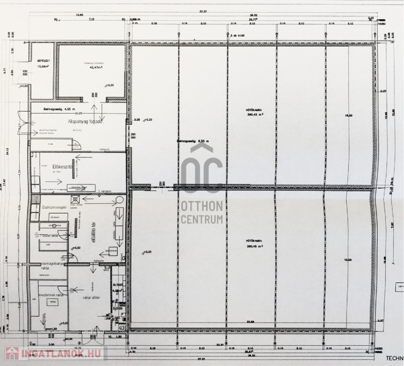 - 2 db 390 m2 6,55 m belmagasságú és 1 db 42 m2 hűtőtér/raktár
