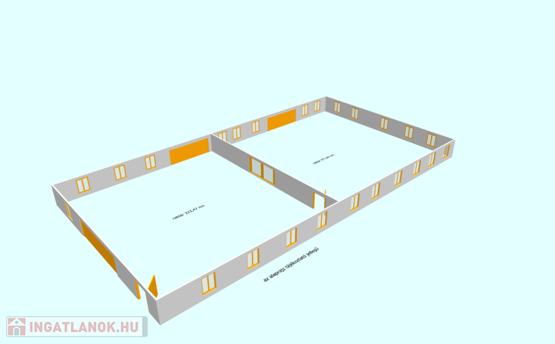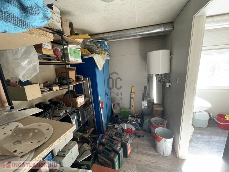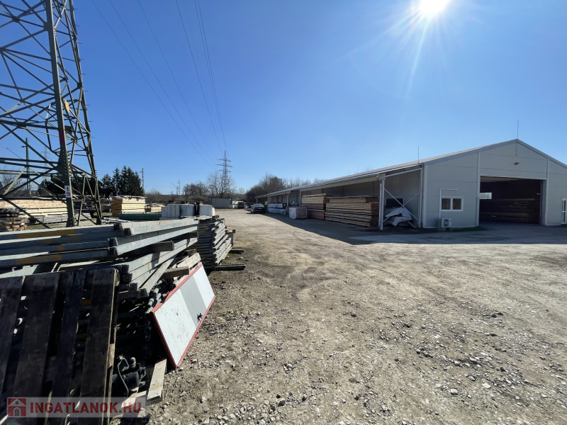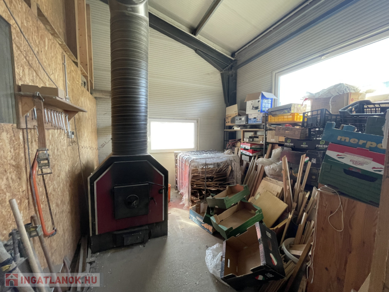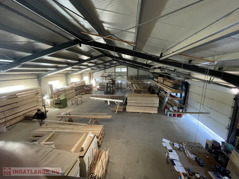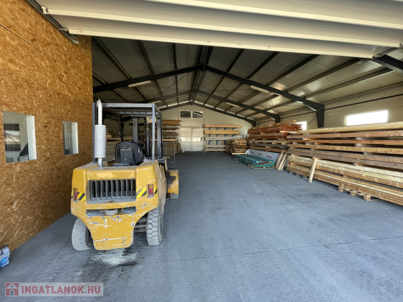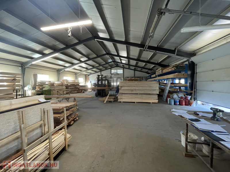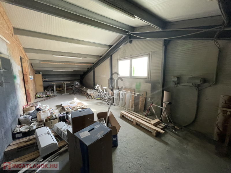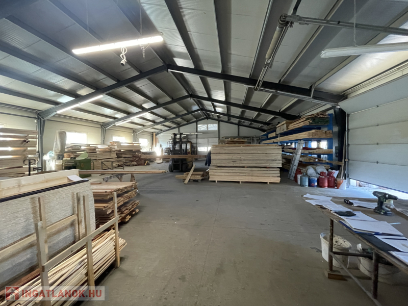 Szerkezete fém és szendvics panel. Az épületben víz, villany (3x50A) található. Az épülethez tartozik egy 150 m2-es fedett rész is. A csarnokban két rész van, a nagyobbik 471 m2-es részben került kialakításra a vizesblokk, iroda, étkező, kazánház. Az emeleti részben egy tárgyaló alakítható ki. A csarnok kisebbik részében, amely 323m2, egy iroda található. Az épület 3 ipari kapuval és egy személyi bejáróval kialakított.