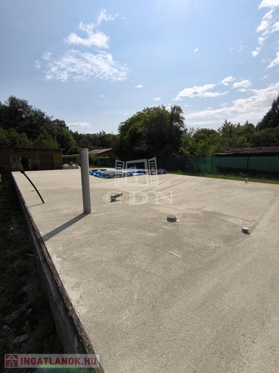 A telek beépítésére 2 szintes építmény tervezett. Ez alapján az épület (70 m2), terasz (20 m2) alapja, valamint egy 10 m2 területű pince már megépült.