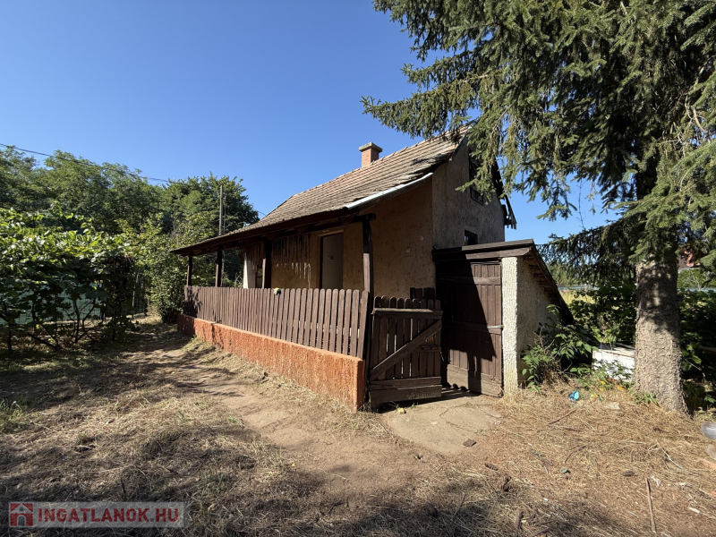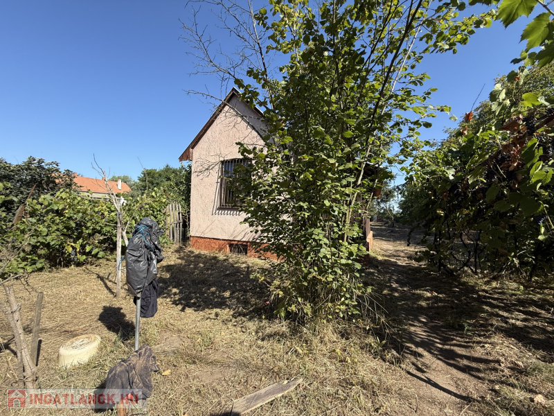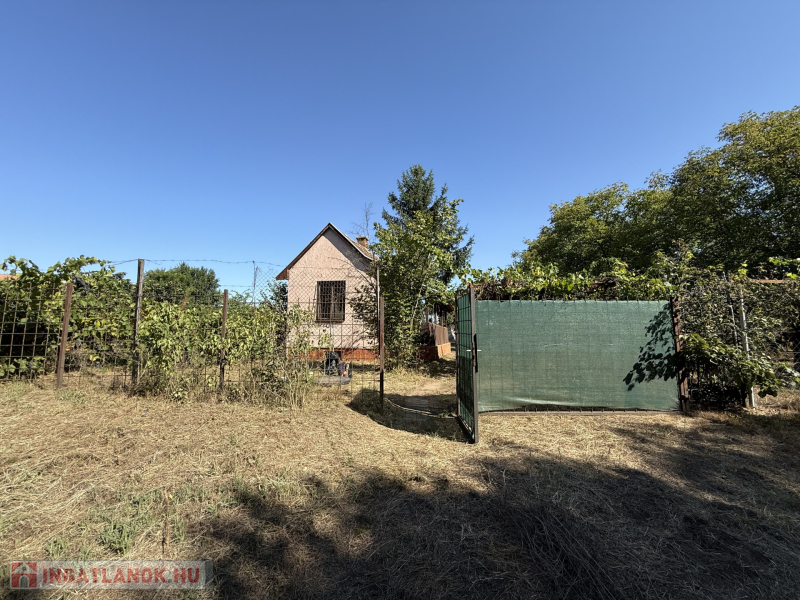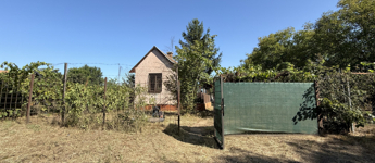 Jelenleg egy 21m2-es alápincézett ház áll a telken, illetve egy tároló.