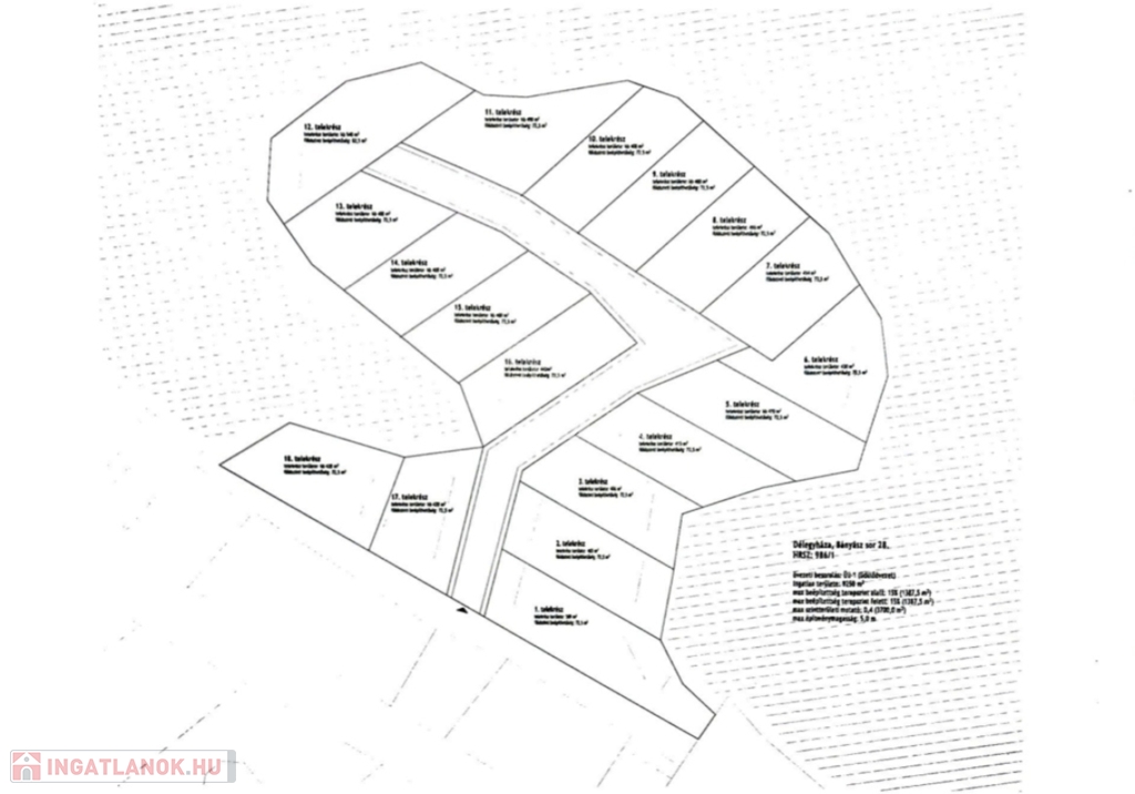 Többféle geodétai felosztási terv már rendelkezésre áll, megtekintés után bemutatjuk. Bár ezek még az üdülő övezeti beépítéssel lettek tervezve azóta természetesen még jobb lehetőségek vannak.