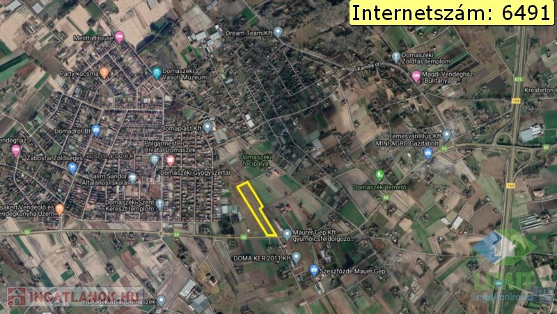 Domaszék község belterületének határán, közvetlenül az 55-ös számú főút mellett, az M5-ös autópálya lehajtójától mindössze 2 km távolságra található fejlesztési terület eladó!