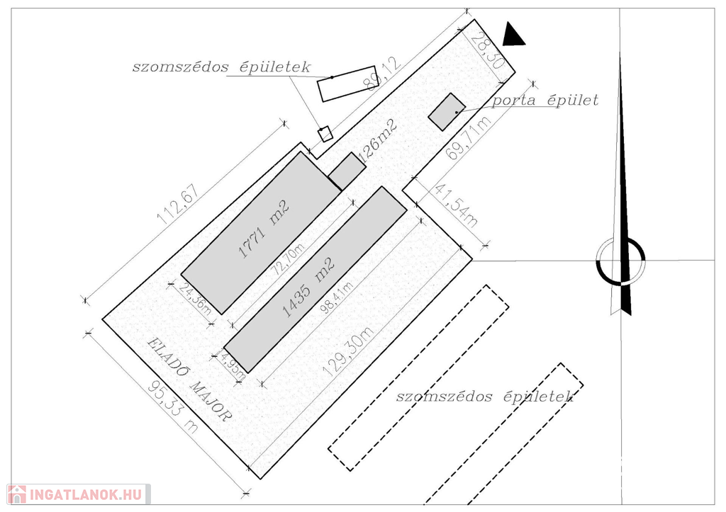 - gazdasági épületek: 1435 m2, 1771 m2,
