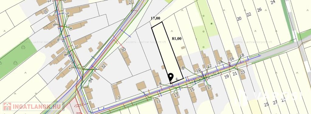 -Az utcafront 17 méteres míg a hosszúsága 81 méter
