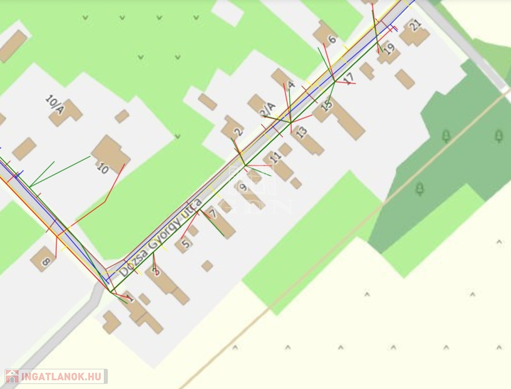 A területen három külön helyrajzi számmal rendelkező telek lett kialakítva 1789 m2, 1304 m2, 1304 m2, ezek egyben is megvásárolhatóak.
