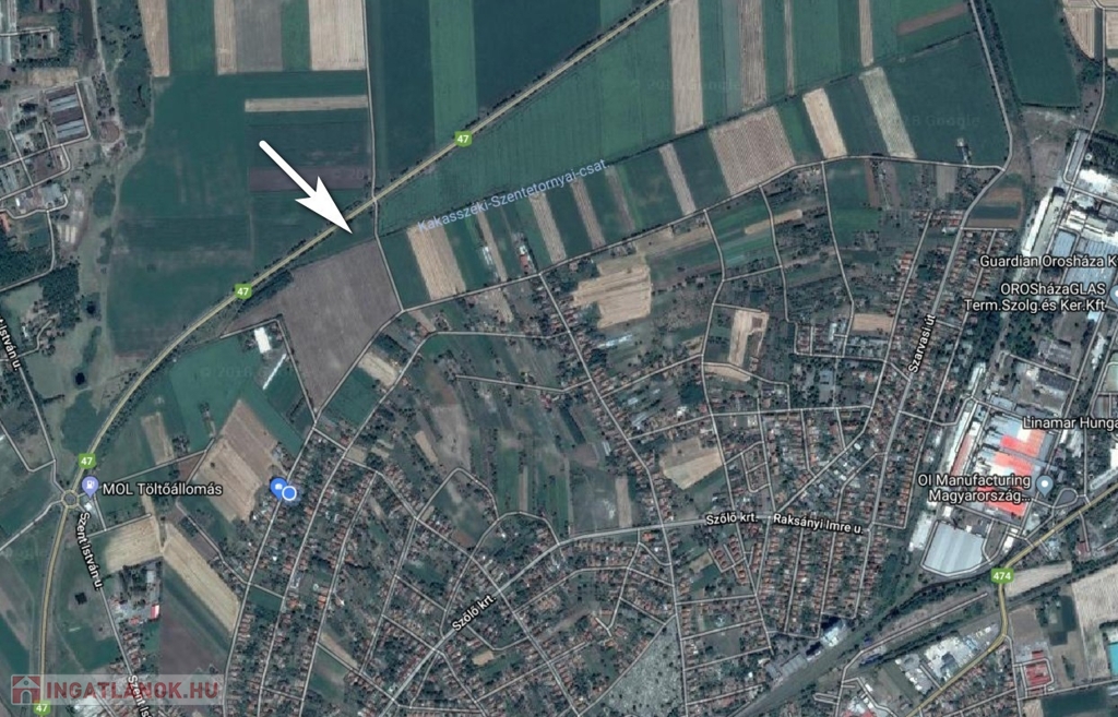 Napelemes kiserőmű létesítésére tökéletesen alkalmas, 10927 m2-es telek eladó a 47-es főút orosházi elkerülő szakasza mellett, jól megközelíthető helyen.