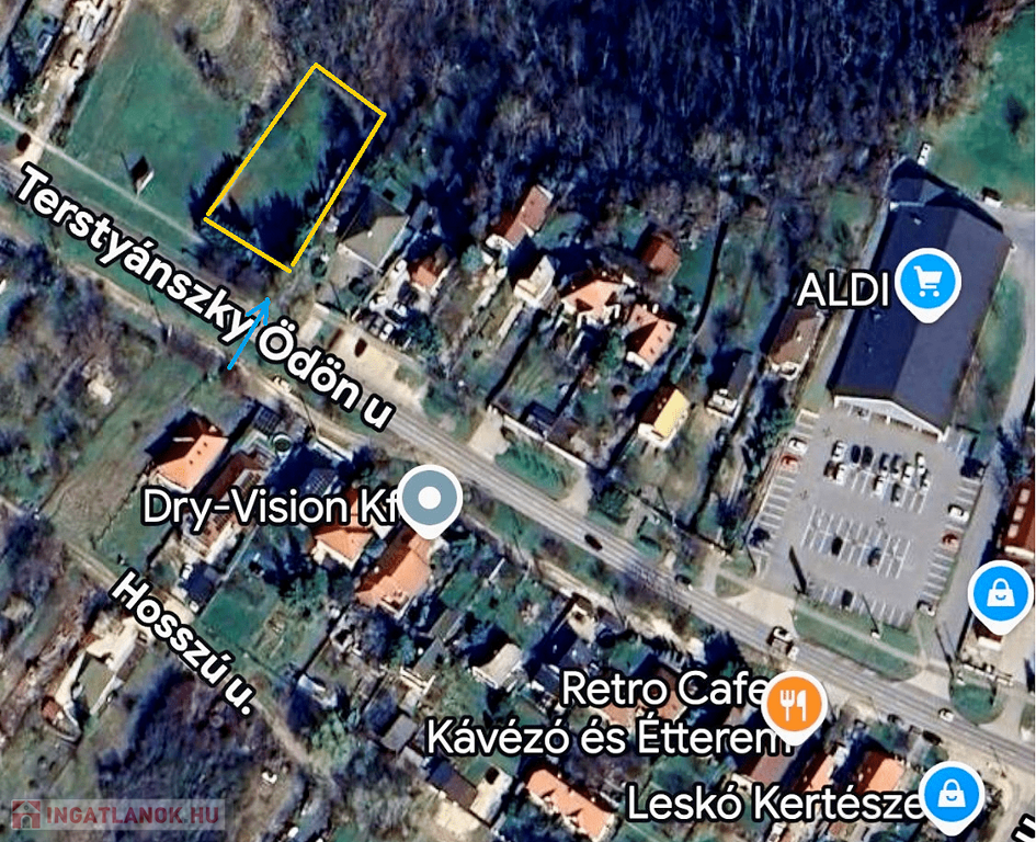 A telek arányos, téglalap alakú, az utcafront oldalon kb. 25 m széles.