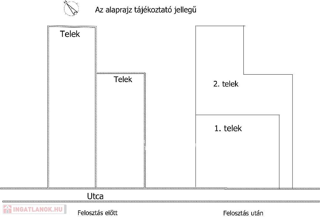 A telek két részre osztható és teljes értékű ingatlanként külön-külön is hasznosítható.