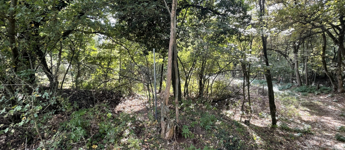 A telek jelenleg fás, bokros terület, építkezés esetén megtisztítása elengedhetetlen. Utcafronti szélessége 50 m, szabálytalan alakú, bekerített terület.