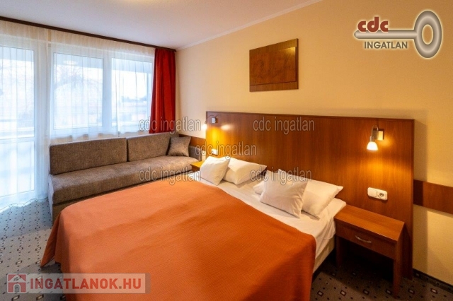 SZUPER BEFEKTETÉS! ZALAKAROSON kínálom megvételre ezt a 6492 m2-es telken lévő, 2583 m2-es, 2 szintes, 44 szobás, wellness részleggel rendelkező, tégla építésű, klimatizált, kitűnő állapotú szállodakomplexumot 55 felszíni beállóval. A szobák klimatizáltak, erkélyesek, beépített bútorok, televízió, mini bár, beépített széf, hajszárító, telefon, a teraszokon kerti bútor található. A szálloda 1983-ban épült, az új keleti szárny pedig 1999-ben került átadásra és azóta több felújítás is történt, fűtés korszerűsítés, napkollektorok felszerelése, éttermem és a wellness részleg felújítása. A wellness centrumban 10×5 m-es ellenáramoltatós termálvizes medence, 12 személyes jakuzzi, pihenőtér, sószoba, infra és finnszauna, gőzkabin, élményzuhany, dézsás sokkoló hidegvizes kneip taposó, külső 8 személyes jakuzzi, gyermek medence, napozóterasz található. Az ingatlan a város központjától délre található közel a gyógyfürdőhöz. Irányár: 1.450.000.000 Ft.