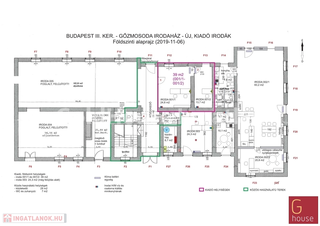 Az irodahelyiségek az épület 1. emeletén és a földszinten találhatók, és a bérlő igényeinek megfelelően alakíthatóak.