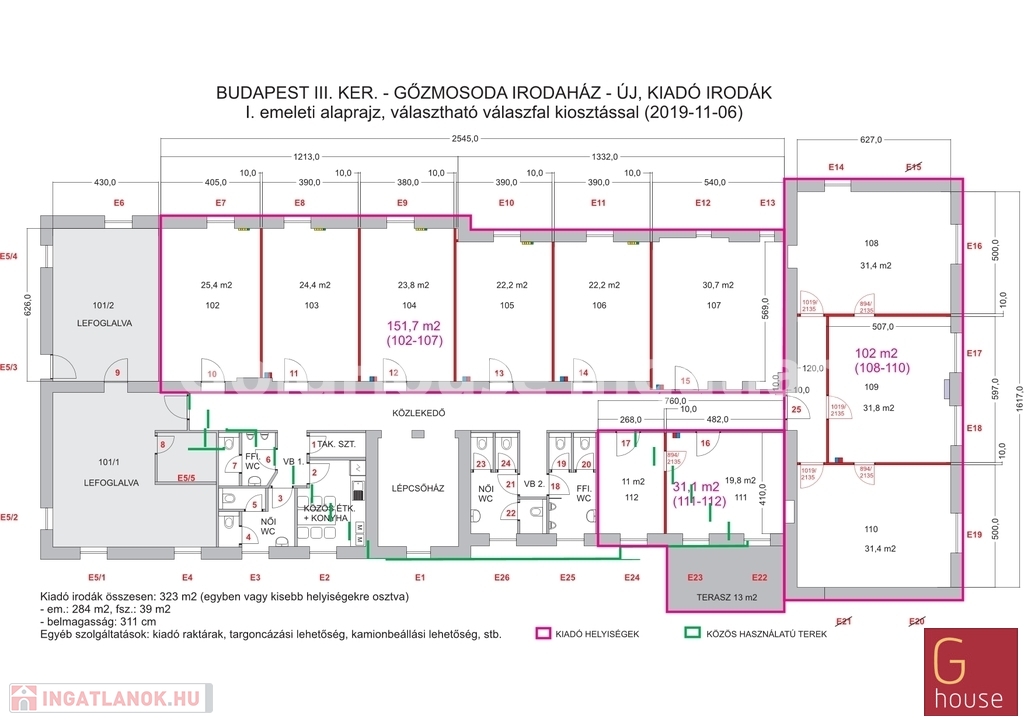 - üzemeltetési költség: 4,5 €/m²/hó+áfa
