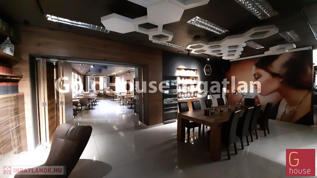 Bemutatóterem, cégközpont, rendezvényterem, étterem, autószalon vagy akár szépségszalon, orvosi központ létesítésére kiváló! Nívós kereskedőháznak, ruha és egyéb márkaboltnak, közért -delikátesz üzletnek is alkalmas. Jelenleg a fele terület exkluzív kávézó-rendezvényterem, de eltérő tevékenység esetén a bárpult könnyen elbontható.