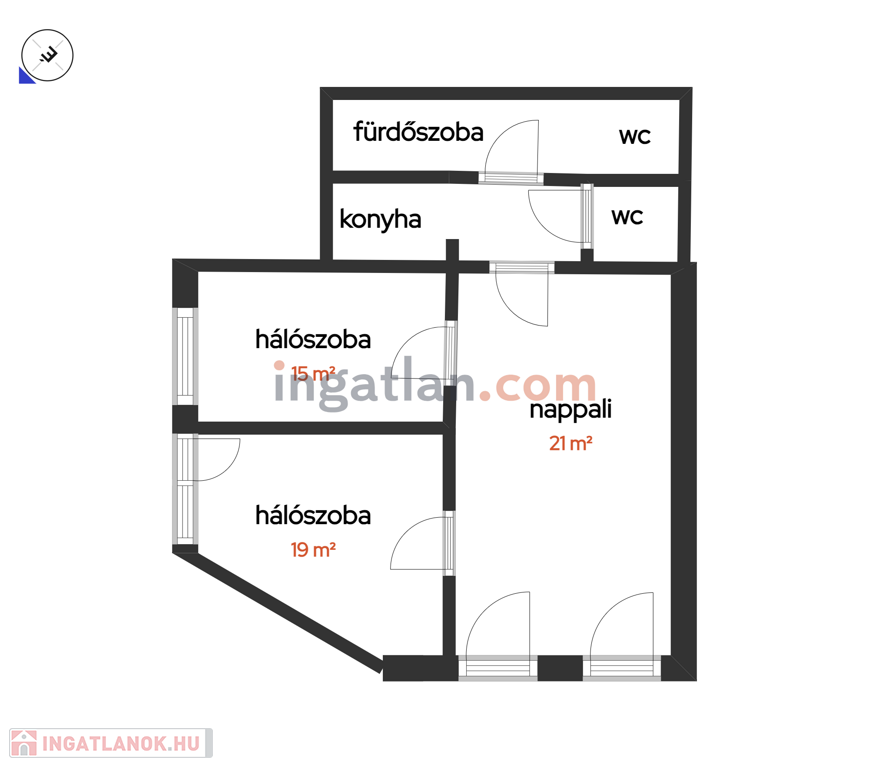 - két 18, ill. 15 m2-es külön bejáratú irodahelyiség