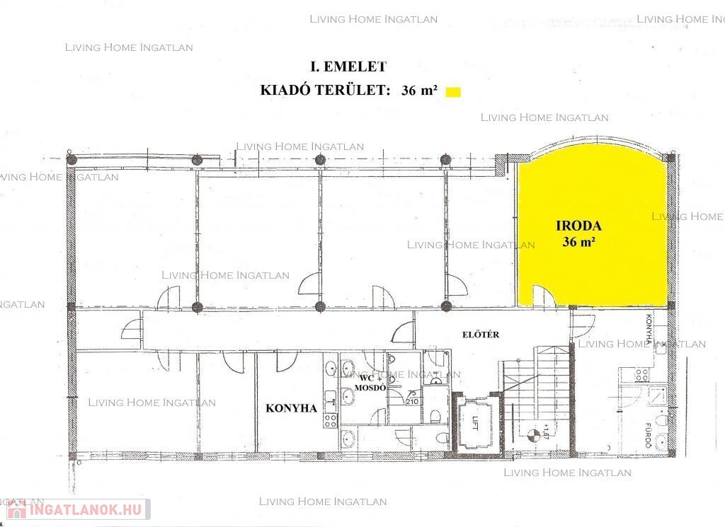 XIII. Angyalföldön 230 nm területen (lásd. alaprajz - tárgyaló, irodák, konyha és szociális helyiségek) légkondicionált iroda bérlésére nyílik lehetőség, azonnali költözéssel!