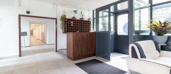 The professional environment is complemented by the ground-floor reception, the comfortable lobby which also serves as a waiting area, as well as the buffet that opens from here.