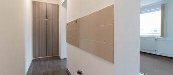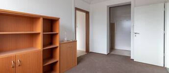 The office, consisting of three interconnected rooms, is located on the 2nd floor of the office building. The rooms are covered with laminate flooring and carpeting.