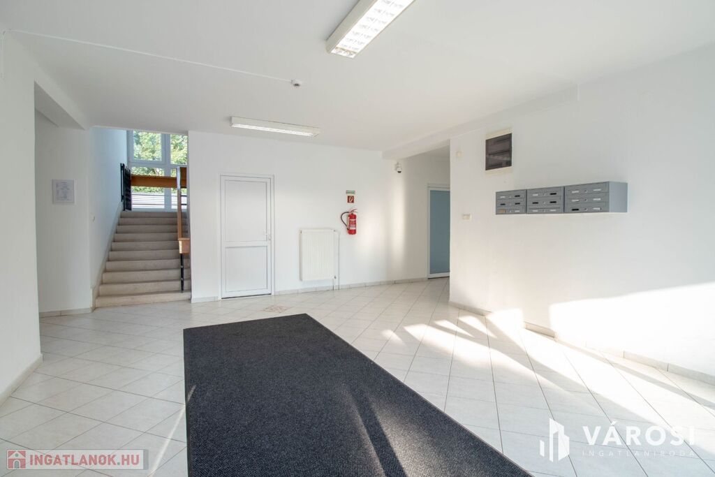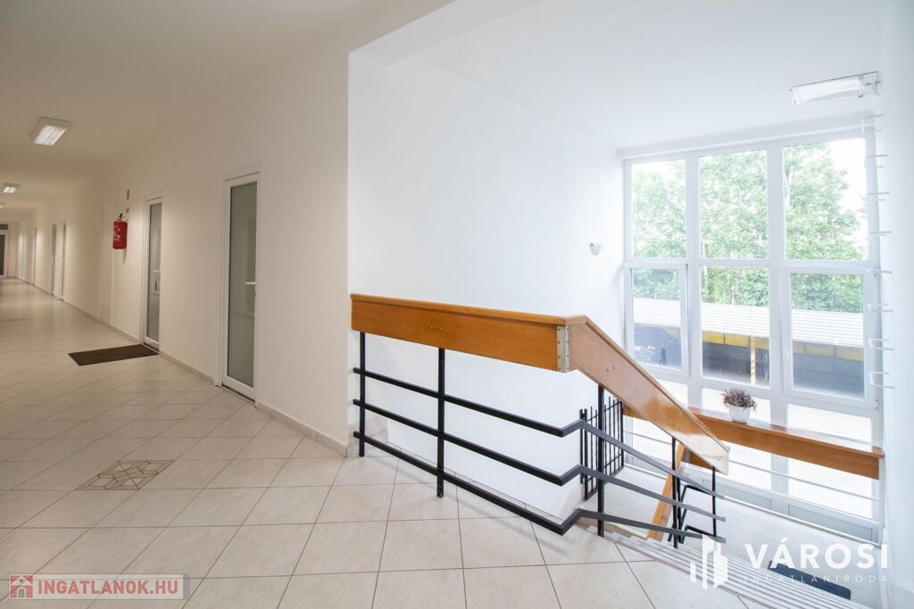 A folyosóról nyílik egy női és egy férfi mosdó, valamint egy teakonyha is, melyet a folyosóról nyíló irodák bérlői közösen használnak.