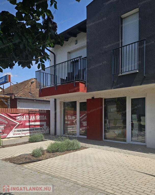Dunaharaszti központi részén, újépítésű társasház földszintjén kiadó egy 26,4 m²-es (20 m² + 6,4 m²), utcafrontos irodahelyiség.