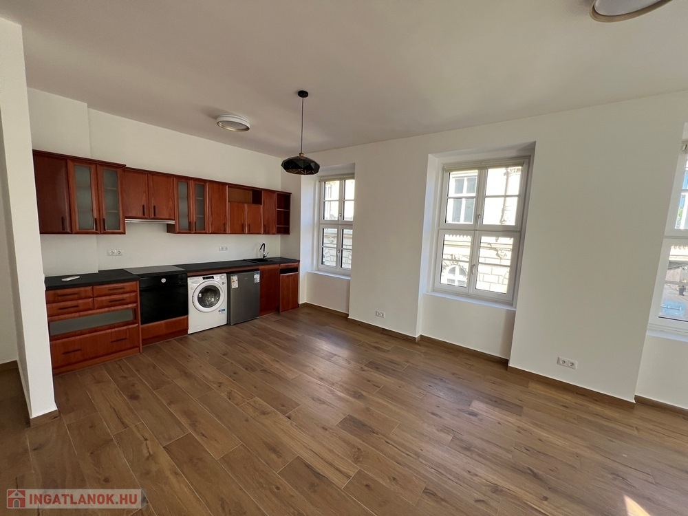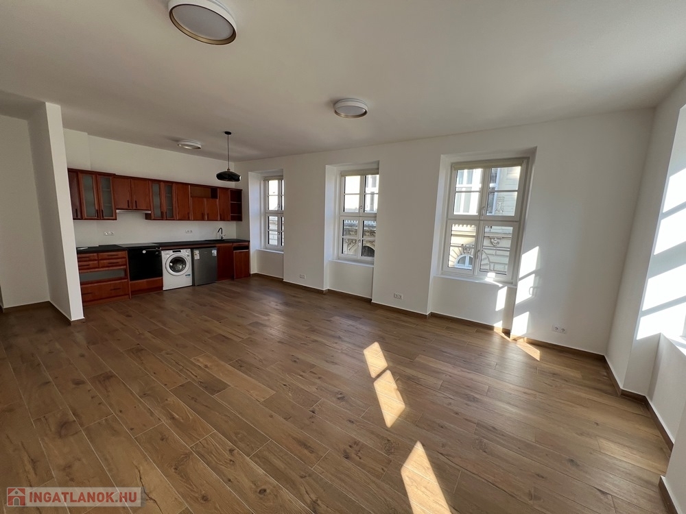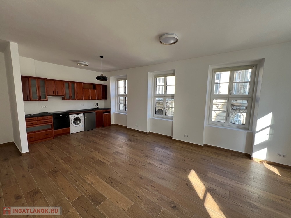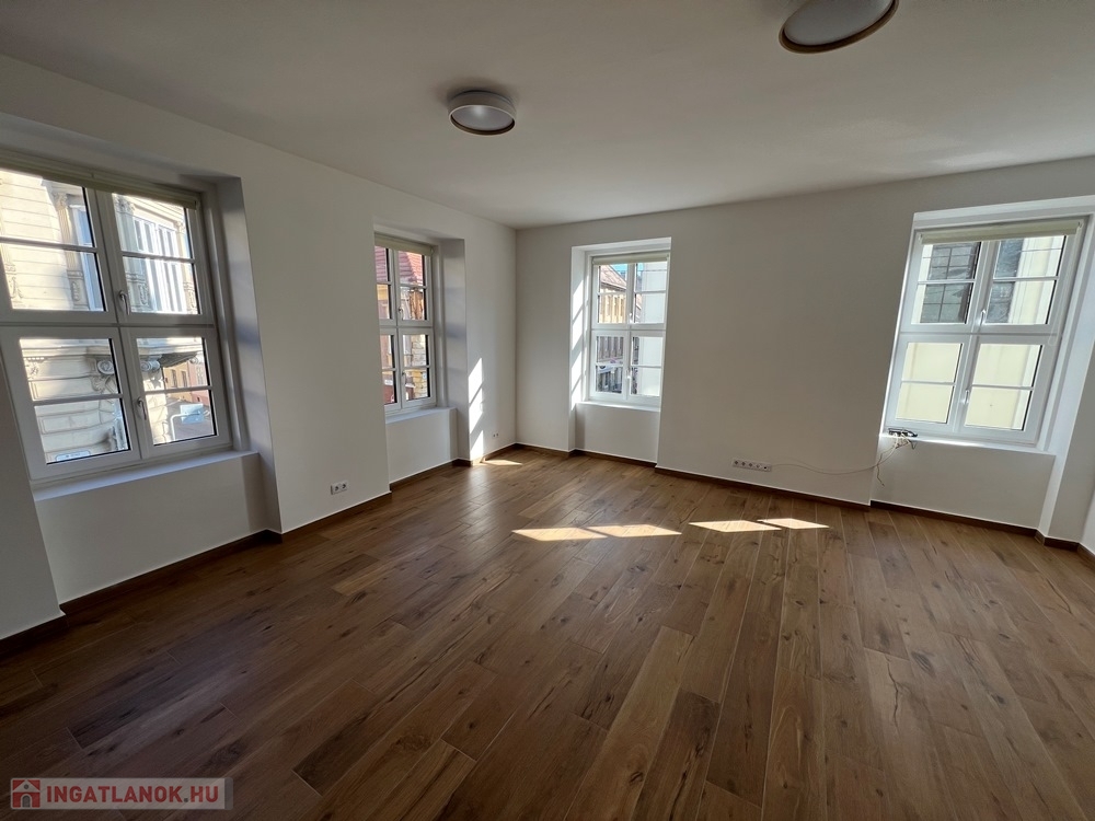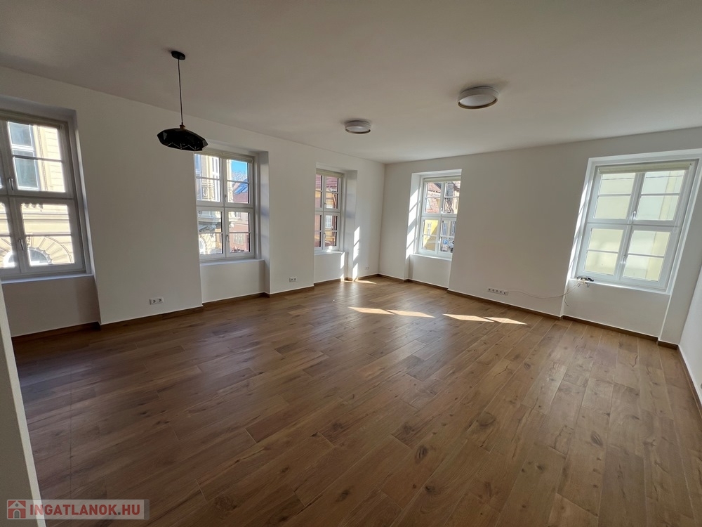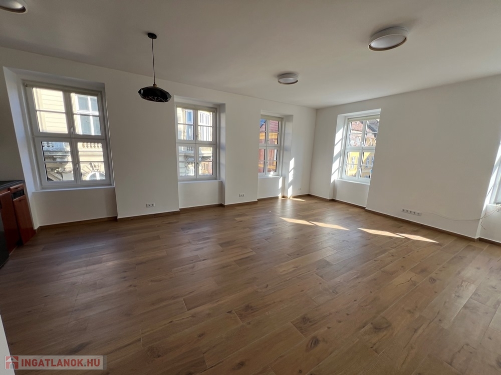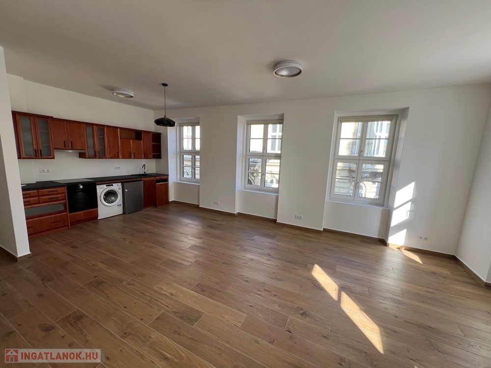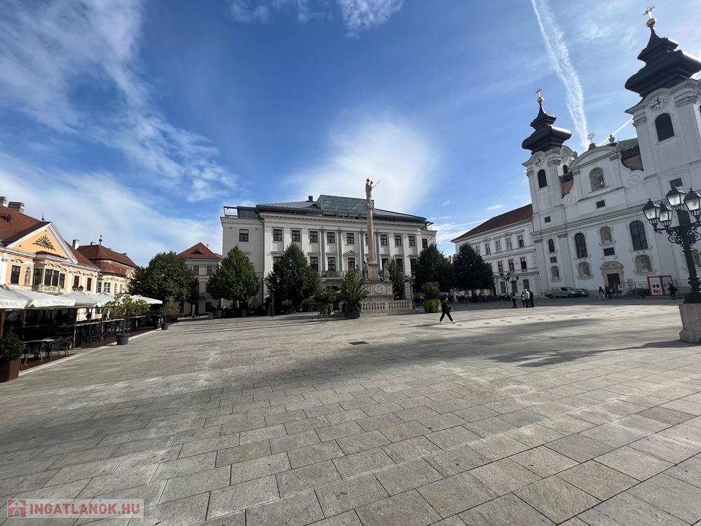 Győr-Belváros rendkívül kedvelt, klasszikus részén, a SZÉCHENYI TÉR sarkán, LIFTES társasház 1. emeletén, amerikai konyha – étkező - nappali + 1 hálószobás/irodás, igény esetén bútorozott és gépesített, kiváló állapotú 75 m2 hasznos alapterületű, prémium kategóriában kivitelezett, KLIMATIZÁLT téglalakás, akár IRODAI funkcióra is kiadó.